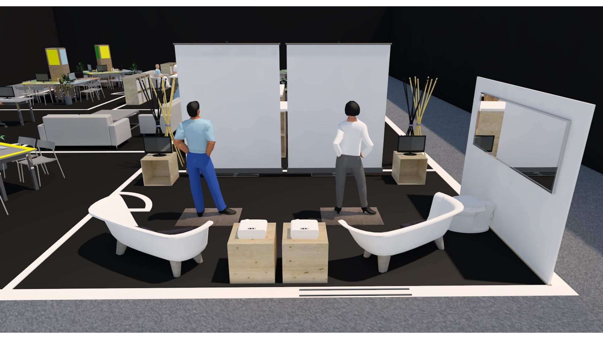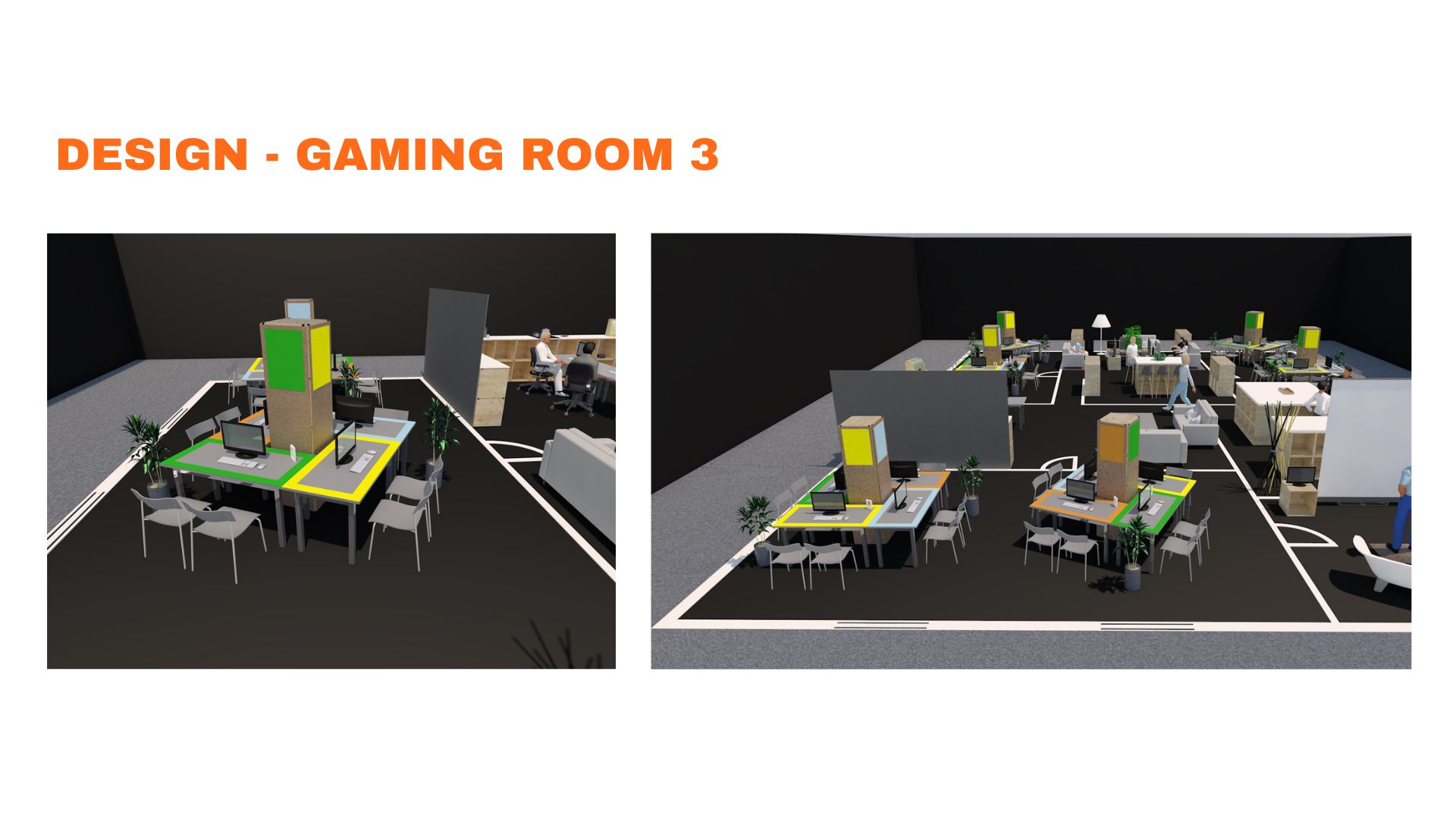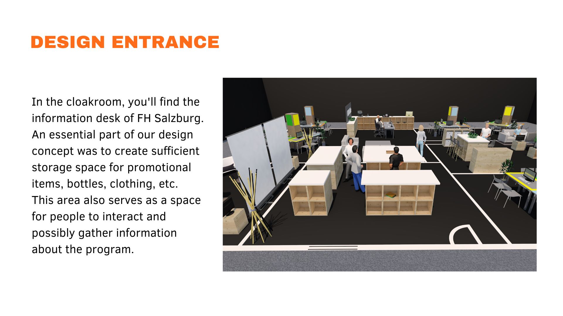For the gaming fair in Salzburg, a booth for the Media Design program at FH Salzburg needed to be designed. The challenge was to work with a given list and utilize furniture and equipment already available at the FH. Our goal was to work as cost-effectively as possible and spend little to no additional money. The booth had to include the following areas: information desk, FM4 live broadcast area, multiplayer gaming area, single-player gaming area, and virtual reality area.